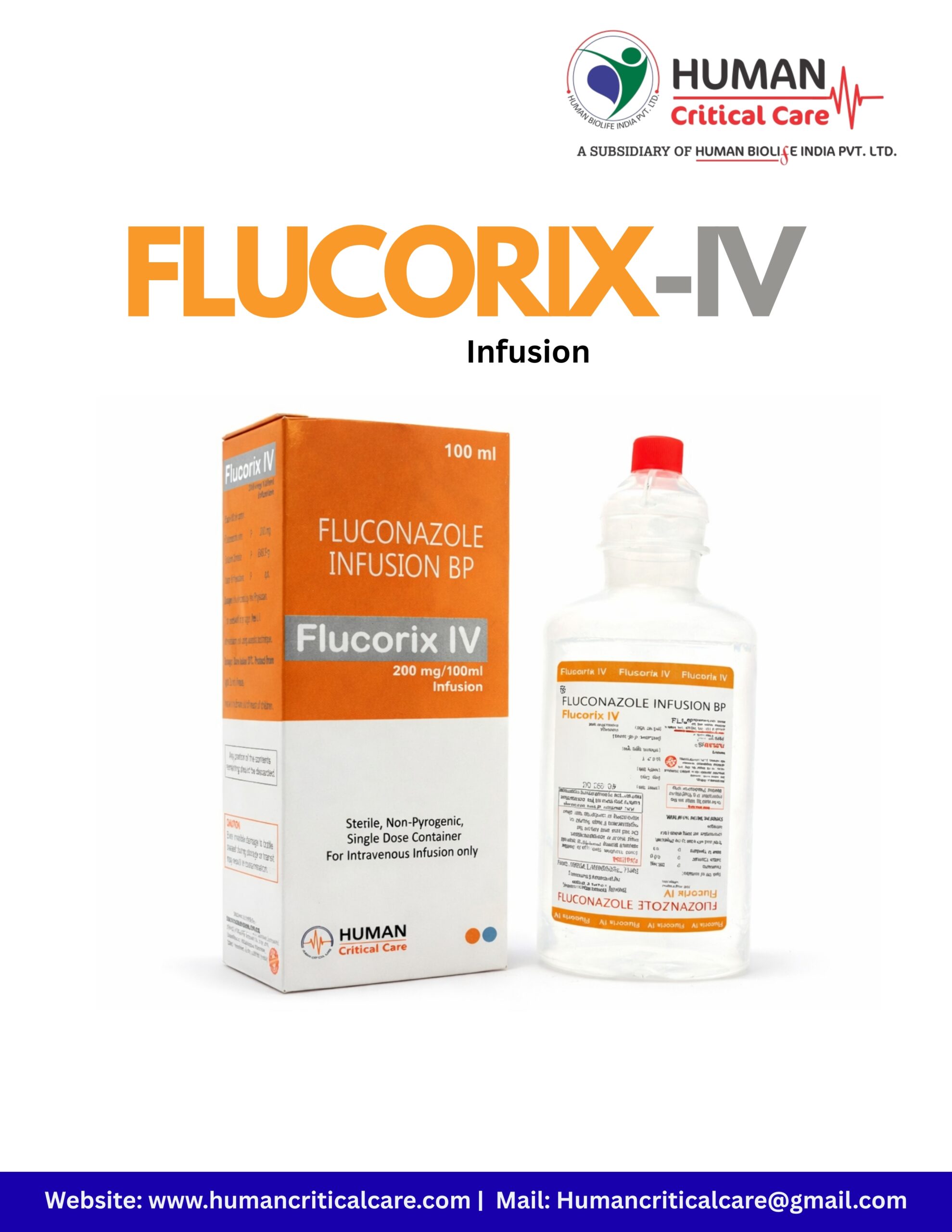FLUCORIX IV is an antifungal medication used to treat serious fungal infections, such as those caused by Candida (yeast). While Fluconazole is common in tablet form, the IV version is used for systemic infections where the fungus has entered the bloodstream or reached internal organs like the heart, lungs, or urinary tract. It works by interfering with the synthesis of the fungal cell membrane, making it impossible for the fungus to survive.